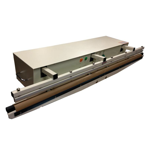 W-Series extra wide automatic sealers are designed for the continuous sealing of thermoplastic materials. The W-1205AAA is equipped to seal materials up to 47″ wide and 15mil total thickness. Unit is controlled by a plug-in transistorized circuit board. Equipped with an electronic timer and electromagnet, once correct settings have been established, consistent seals will be maintained automatically.